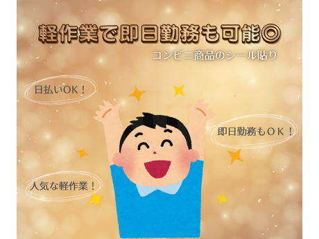 コンビニ商品のシール貼り/自分のペースでもくもく作業/日払い対応/簡単作業で即日勤務も◎