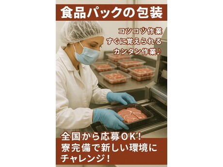 倉庫内作業/食品パックの包装/簡単軽作業/日払い可能/寮費ゼロ円/20代~40代男女活躍中