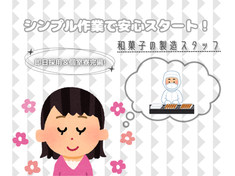 和菓子の製造/シンプル作業で安心スタート!/自分のペース/即日採用&個室寮完備