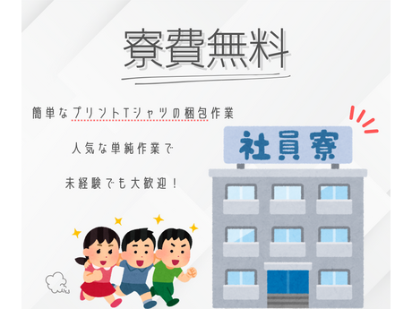 プリントTシャツの梱包・単純単調作業・覚えること少ない・寮付き・寮費無料