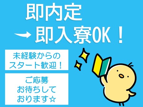 引越しサポート制度・食事補助付きで、所持金が少ない方も安心スタート。