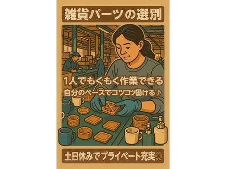 コツコツ作業/雑貨パーツの選別/かんたん作業/家賃無料/未経験可能/20代~40代男女活躍中
