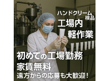工場内軽作業/ハンドクリームの検査/もくもく作業/寮費0円/高時給/20代~40代男女活躍中