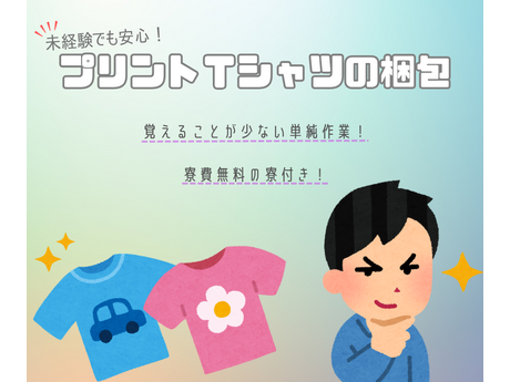 プリントTシャツの梱包/単純単調作業/覚えること少ない/寮付き/寮費無料